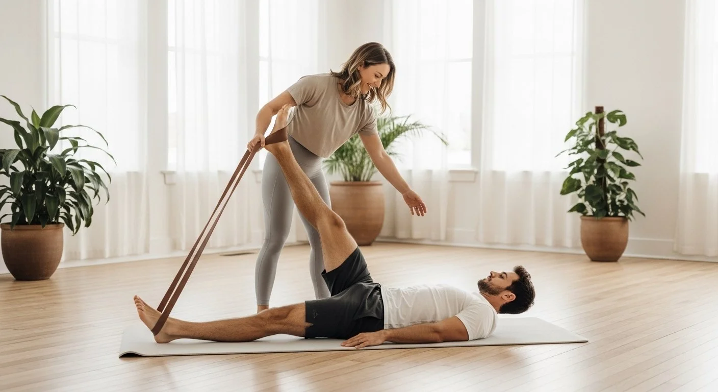 Resistance Stretching is a dynamic training method that combines stretching with active muscle engagement. It helps release tight fascia, prevent injuries, and develop controlled flexibility. Each movement strengthens your muscles while maintaining tension, improving both flexibility and functional strength — ideal for athletes and recovery seekers alike.