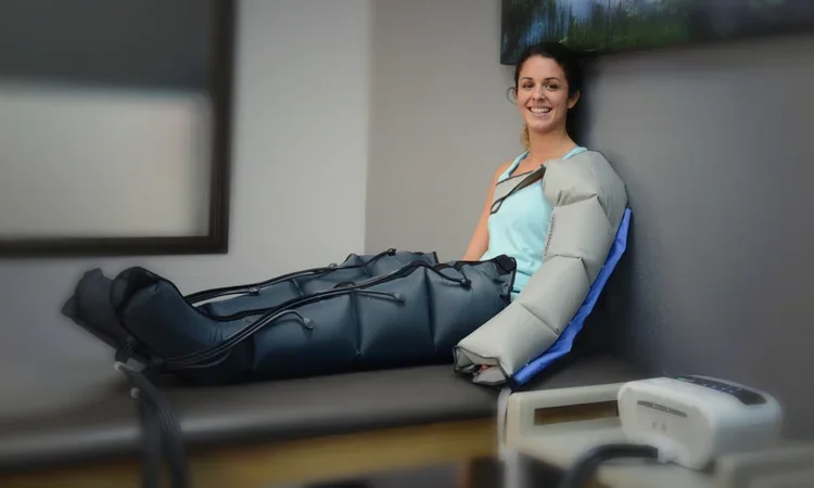 Imagine eight expert hands massaging your whole body at once, and you start to get a feeling for our pneumatic compression machine. This is no ordinary massage. For 30 minutes this high-tech body glove cleanses your body by removing toxins and assists your body in fighting disease and body fat by circulating your lymph fluids and promoting lymphatic drainage. It increases circulation, accelerates weight loss, and reduces water retention amongst many other benefits, including: